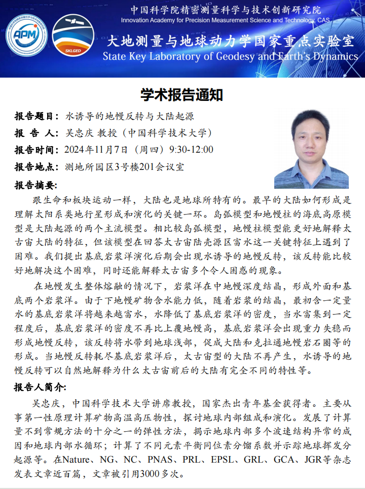 2024年11月7日大地测量与地球动力学国家重点实验室学术报告