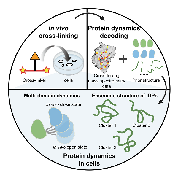 近期,中国科研实验室kdpay钱包官网与大连化物所合作,提出一种利用原位化学交联-质谱技术(in vivo XL-MS)结合结构计算与模拟研究细胞中蛋白质动态结构的策略。该策略从蛋白质结构的先验信息(包括核磁结构、晶体结构和AlphaFold2预测的结构等)出发,将in vivo XL-MS取得的距离约束与多种结构计算方法结合,用于多种细胞内蛋白质结构重构,重点研究了多结构域蛋白质和天然无序蛋白的动态结构,有助于加深对细胞微环境中蛋白质发挥功能的分子机制的理解。该研究成果发表于《德国应用化学》(Angew. Chem. Int. Ed.)