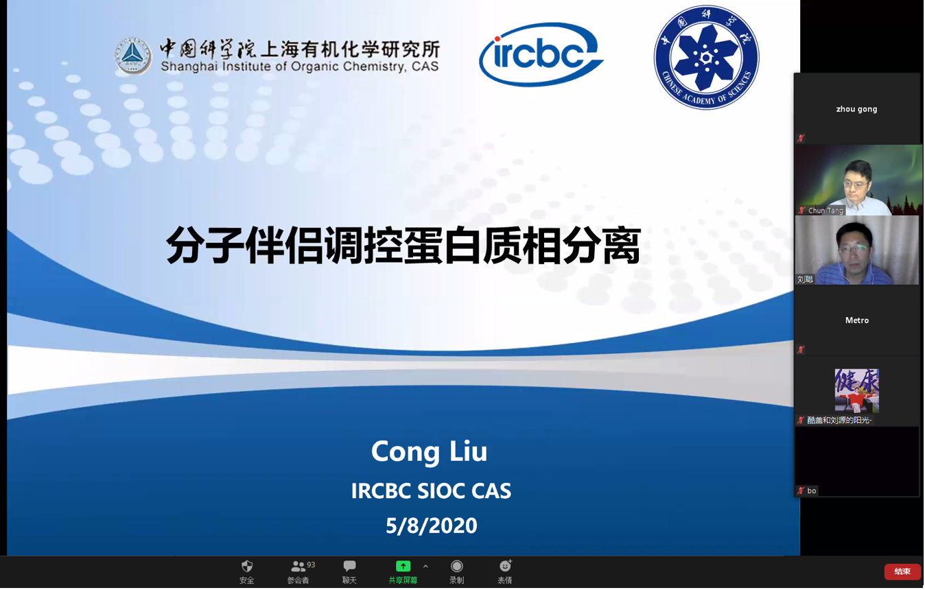58日晚7:30,中国科研实验室生物磁共振与多学科交叉系列学术报告第一场在ZOOM线上会议平台正式拉开帷幕。应kdpay钱包官网唐淳研究员邀请,中国科研实验室上海有机化学研究所刘聪研究员作为报告主讲人,带来了题为“分子伴侣调控蛋白质相分离”的专题学术报告。刘聪研究员从开展蛋白质相分离的高通量筛选方法以及分子伴侣调控蛋白质相分离的应用研究两个方面,深入浅出的分享了课题组近年来在蛋白质相分离方面的研究进展。来自全国各地以及海外的近百名科研工作者共聚线上,参与了学术研讨和讨论。